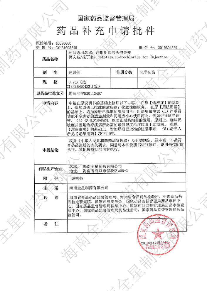 經(jīng)過公司研發(fā)團(tuán)隊(duì)長期循證醫(yī)學(xué)研究,并結(jié)合上市原研藥品使用說明書,我公司向國家藥品監(jiān)督管理局提交的注射用奧美拉唑鈉、注射用鹽酸頭孢替安(4種規(guī)格)和注射用頭孢呋辛鈉(3種規(guī)格)適應(yīng)癥的補(bǔ)充申請近日獲得批準(zhǔn),新核準(zhǔn)的藥品使用說明書拓展了臨時(shí)用藥范圍,用法用量描述更詳細(xì)更為安全,提供了更加嚴(yán)謹(jǐn)?shù)挠盟幰罁?jù),有助于臨床醫(yī)生在一線工作中制定出更準(zhǔn)確、更有效、更有針對性的治療方案。今后,公司將繼續(xù)提高研發(fā)力量,加強(qiáng)技術(shù)生產(chǎn)工藝,嚴(yán)把質(zhì)量關(guān)口,為市場提供更多高品質(zhì)、高標(biāo)準(zhǔn)的優(yōu)質(zhì)產(chǎn)品,為2030年健康夢中國夢添磚加瓦,獻(xiàn)上我司的一份努力。